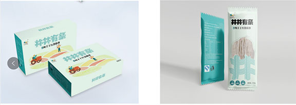 方案三设计理念是强调自然、健康和可持续性,与纯手工红薯粉条的产品特性相契合,一盒将红薯粉条分为四包分别将“井井有条”四个字做成一个包装,组成一个整体,形成一整套包装。整体来看,这个设计理念有效地传达了产品的高端、健康和环保特性,同时也为消费者提供良好的购物体验。