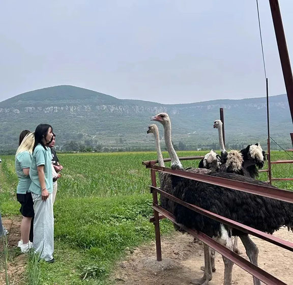 实践团来到了济南市长清区双泉镇五眼井村村委会,村书记杨雨首先向大家介绍,五眼井村至今已有六百多年历史,村里山区丘陵地貌明显,东依九顶莲柱山,西邻“鲁西小延安”——大峰山革命根据地旧址,齐长城绕村经山脊而过,具有深厚的历史文化底蕴,在漫长的发展过程中,五眼井村形成了自己独特的民俗、民风和文化。随后带领团队师生参观了五眼井村的村容村貌、特色农产品产业基地、鸵鸟养殖基地、农产品销售直播间,深入了解五眼井村的发展历程。同学们深入田间地头,与农民们交流,了解农产品的种植、养殖、加工和销售情况。他们发现,虽然这里的农产品品质优良,但由于包装简陋、缺乏品牌标识,在市场上的竞争力相对较弱。为了更全面地了解情况,实践团还对周边村庄进行了走访调研,发现类似的问题普遍存在。走访结束后,杨书记和团队成员进行座谈,他表示五眼井村是一个以农业和养殖业为主导产业的村庄,这里产品品质优良,但面临附加值低、品牌形象缺乏、市场上的竞争力较弱等问题,导致农产品收入增收较少,希望实践团充分发挥专业优势,升级产品包装设计,提高市场竞争力。
