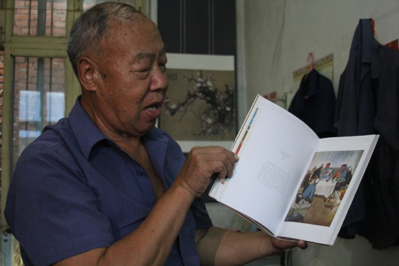 在一位已经拥有48年党龄的老党员臧传水家中,臧老不仅亲自讲述了自己是如何在风雨兼程中申请入党,如何将“为人民服务”铭记于心并付诸实践的故事。他还慷慨地展示了个人多年来精心收集的关于老一辈革命家的书籍、纪念物品等珍贵藏品,通过这些实物资料,实践团成员们得以直观感受那些革命先烈们高尚的情操和坚韧不拔的精神风貌。