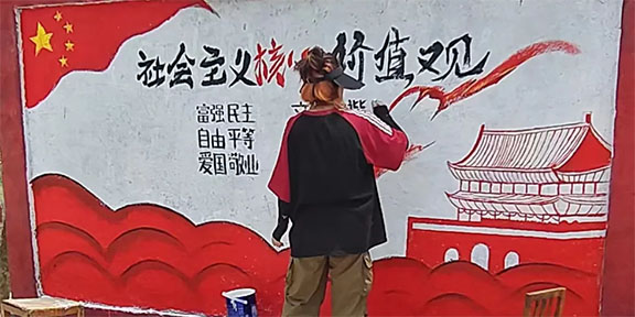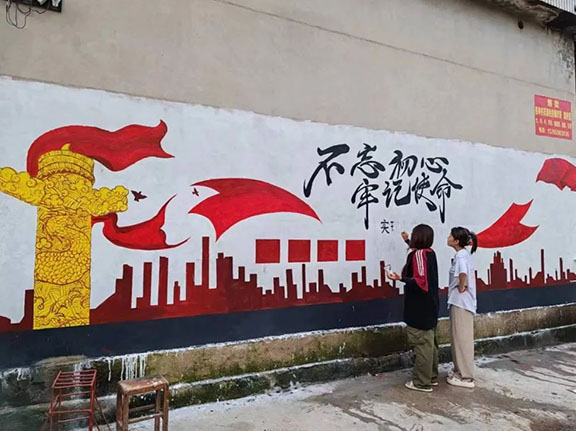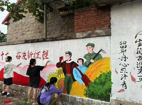 为传承红色文化与革命精神,弘扬社会主义核心价值观,实践团成员深入临沂市新庄镇富隆村,结合墙绘艺术,积极展现红色文化,讲好红色故事。