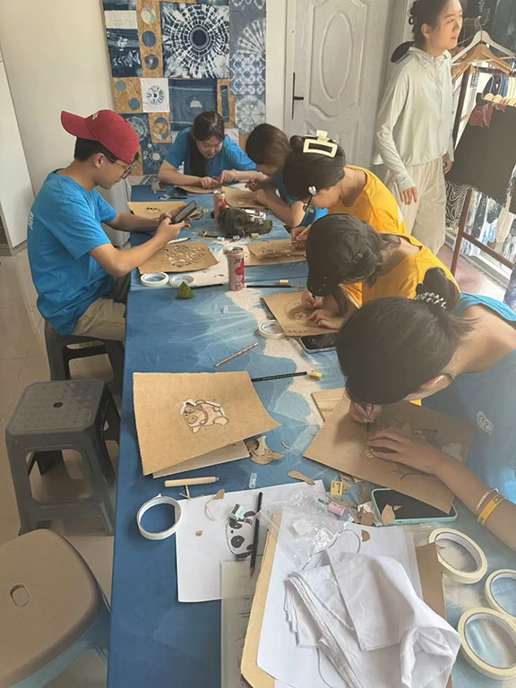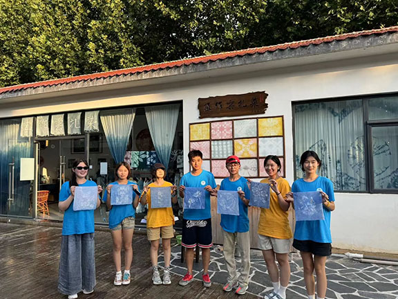 “青听染韵、逐寻绣迹”社会实践队来到了济南芦南乡创基地,芦南村始终坚持党建引领,守正创新,先后获得“山东省乡村振兴突出贡献奖先进集体”“省级两山理论实践创新基地”等荣誉。当地负责人对于实践队的到访学习表示热烈欢迎,并一同积极展开扎染文化的发展和传承情况进行调研考察。目前,由于扎染制作过程较为繁琐,宣传较少,很多人对扎染并不了解。对此成员们提出可以加强宣传力度,通过各种平台加大对扎染的宣传,并且开展特色非遗文化体验活动加强人们对扎染的了解。