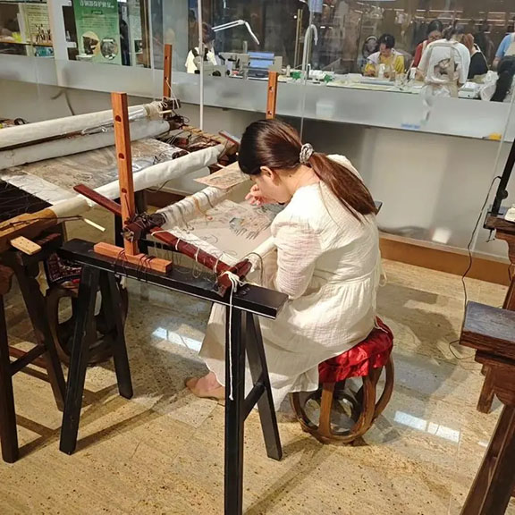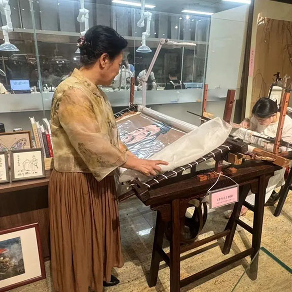 在顾振美老师、任晴老师、刘瀛波老师和范春红老师的带领下,我们来到了山东省博物馆,观看了许多精美的鲁绣藏品并采访了鲁绣非遗传承人——宋爱华老师,了解到鲁绣的历史、技法、发展现状等。绣品清隽淡雅,质感逼真,风格粗犷中见精微,是中华民族悠久刺绣文化的重要组成部分。此次参观与采访让我们更深刻的了解了非遗文化,希望可以将非遗鲁绣推广使其得到进一步的传承发展。