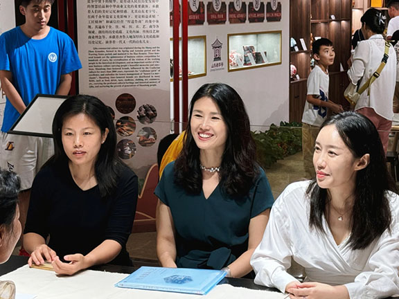 宋爱华老师接受同学们采访,并与范春红老师、顾振美老师、刘瀛波老师进行学术交流