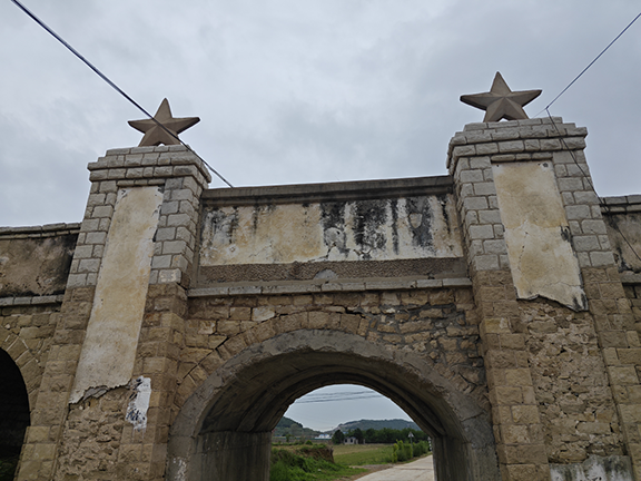 首站,我们来到了位于大街村北侧220国道上的东风渡槽。东风渡槽建于文革时期,全长367米,共46孔,主孔高17米,跨度12米,实浇地2.5万亩,极为壮观的它为孝里洼综合开发提供了可靠水源。东风渡槽用砖块层层累砌,并采用桥洞的设计原理,在保持主体稳定的同时节省原料。虽现已废弃,但它巍峨磅礴的气势展现了人们战胜自然的决心,是孝里人民改造自然永远的历史见证。