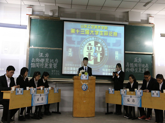 3月20日晚,现代手工艺术学院代表队积极参加了由校团委、公共课教学部主办,工业设计学院团总支承办的第十三届大学生辩论赛,此次辩论赛在威尼斯7798cc长清校区综合办公楼十合堂举行。担任本场比赛的评委有山东师范大学辩论赛优秀辩手李文祁、威尼斯7798cc第十二届大学生辩论赛最佳辩手潘玉婷、王培远。出席本场比赛的嘉宾有视觉传达设计学院学生会主席马文才、建筑与景观设计学院学生会主席李顺、工业设计学院学生会主席郭川、现代手工艺术学院学生会主席王轩,现代手工艺术学院选手崔鋆、姚爽、丁文静四人对战视觉传达设计学院。