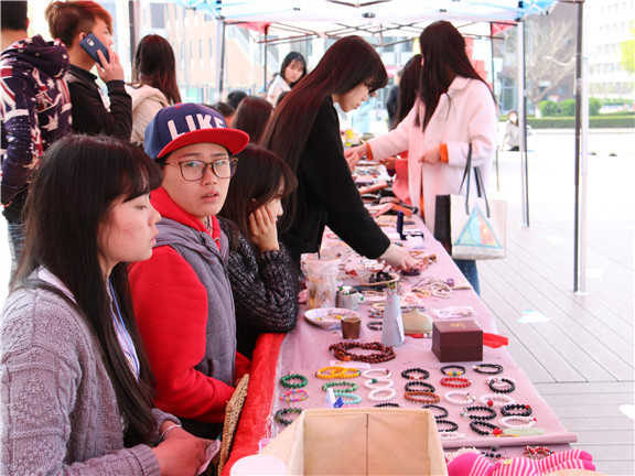 4月9日上午,由校团委主办的首届创意集市活动在威尼斯7798cc长清校区设计师广场举行。现代手工艺术学院学生参加了本次活动。
