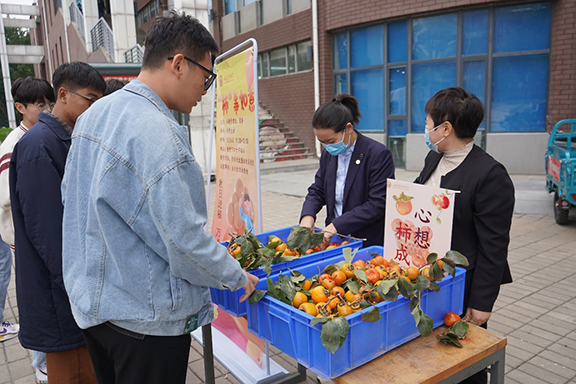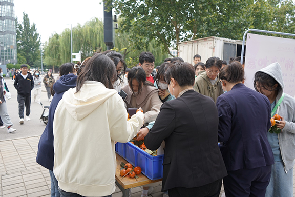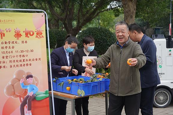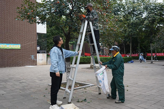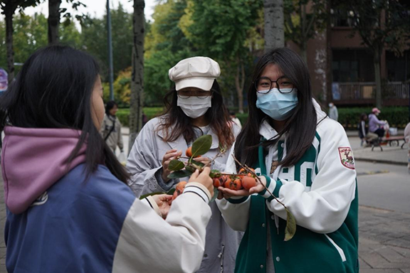 参与采摘的同学们文明有序,活动现场气氛活跃。大家在劳动过程中体会到丰收的喜悦与合作的快乐。同学们将摘下的部分柿子现场进行分发,剩余的柿子被送往学生食堂、教工餐厅,一起品尝着在山工艺沃土上结出的香甜果实。