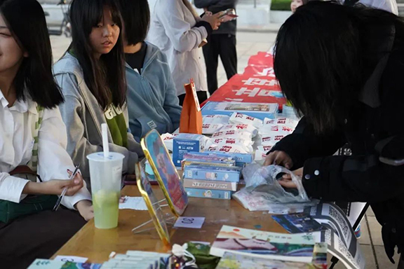 最后,在主持人的呼吁下,观众们逐渐围向了义卖摊位。同学们捐助的每一分钱,每一份物品都深深表达了他们的善意。