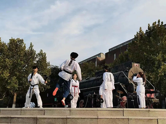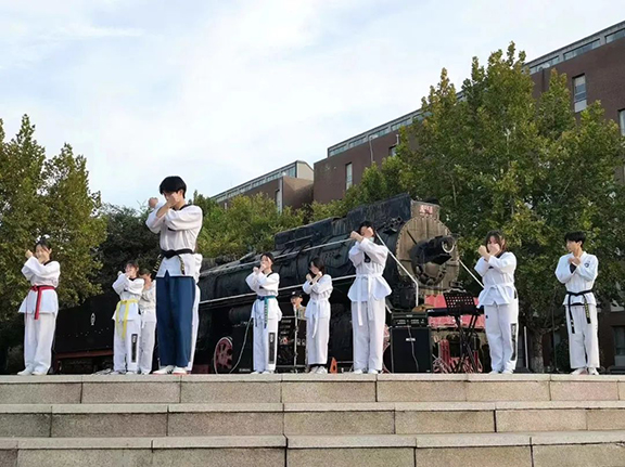 在气势磅礴的音乐伴奏下,一招一式,一拳一脚都那么舒展豪放、洒脱自如,充分展示武术的无穷魅力。
