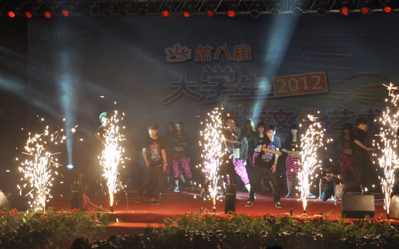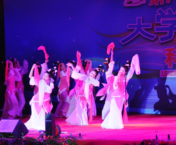 开幕式在动感的街舞中拉开了帷幕,随着激情澎湃的火车头乐队的登场的气氛骤然升温。婀娜多姿的《桃妖》,姿态动人的《敦煌》,令人赏心悦目。歌曲联唱更是将演出推向了一个有一个高潮。动漫协会精心准备的cosplay各个神采飞扬,传神的服饰丝丝入扣、动作惟妙惟肖。最后,晚会在领导与同学的合影中圆满落幕。