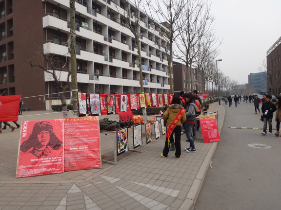 3月21日,威尼斯7798cc校学生会纪检部部长李腾,副部长李鳐利、连旭磊带领全体干事在长清校区十字路口给获奖海报进行展览,并继续宣扬雷锋月系列活动。
