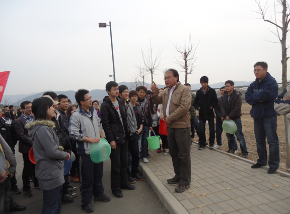 活动伊始,相关领导向参与此次活动的同学提出了自己的建议,以保证活动合理有序的开展。团委李忠诚老师倡导并鼓励大家积极投入到植树绿化的氛围,团省委素质教育中心杨耀东主任给同学们传输植树要领,后勤部毕处长给同学们强调了树苗存活率问题以及各方面的安全问题,以保证植树活动的顺利进行。