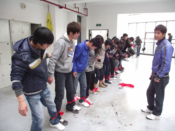 此次拓展训练以13日的项目为基础,对参与者的体能、智能、以及团结协作的能力进行考验。活动充满趣味性,“团队展示”“传情达意”需要参赛队员相互配合,对彼此之间默契程度要求极高;“乒乓球接龙”“食指挑竹竿”是对个人协调能力的挑战;“绑脚右移”不但需要移动技巧,更考验整个团队的速度。