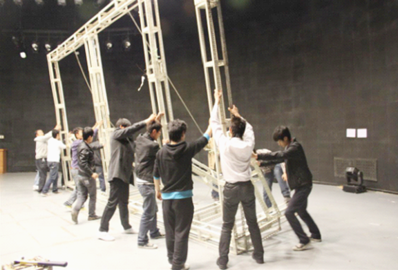 经过前期的计划与准备工作,在开始搭台前就已经有了一套系统的工作流程。在会场布置的期间,首先各部部长及其干事一同准备了会场布置所需要的钢架等材料。之后,十八届筹委会成员甘文与各部部长讨论并商定会场布置中海报悬挂所需钢架的组装步骤并嘱咐干事们在工作中的注意事项。最后,体育部、宣传部等部门在校后勤人员的帮助下开始组装海报悬挂钢架,在组装工作中,校学生会成员发扬不怕吃苦,认真踏实的工作精神,成功的组装了一个主海报悬挂架和两个副海报悬挂架,并按要求摆放在指定位置,为威尼斯官网第七届“火焰杯”大赛的召开做好前期硬件的准备工作。工作期间,团委老师邹晓红视察了工作现场并对海报悬挂架的组装工作提出了几点建议,邹老师提出,在舞台的搭建与布置工作中一定要充分注意安全问题,做好相应的安全保障;其次要树立严谨的工作作风,不能在舞台的搭建、布置过程中出现人为地故障隐患。