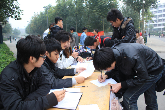 10月20日-22日,校学生会文艺部在长清校区19栋宿舍楼前对第七届“火焰杯”十佳歌手校园大赛进行了宣传,并且进行了现场报名,本次报名活动由校学生会筹委会成员,文艺部部长组织展开。2010级新生的极高的参与热情,使报名人数超出我们预测的报名数量。