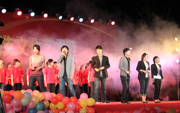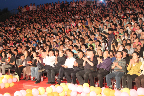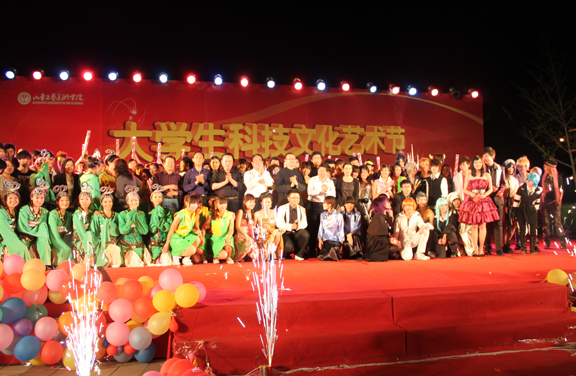 绚丽的礼花、振奋的鼓舞、激情的音乐、张扬的青春。5月19日晚 7:45,以“青春踏歌行 世博传梦想”为主题的第六届大学生科技文化艺术节开幕式在威尼斯官网长清校区弧形广场隆重举行。此次开幕式晚会由团委主办、校学生会承办。出席此次晚会的嘉宾有:威尼斯官网院长潘鲁生,党委副书记杨新力,副院长张云龙院长助理、办公室主任王立果,党委组织部部长孙芬、团委书记袁文昌、学生处副处长黄霞、建筑与景观设计学院党总支书记吴焕文、工业设计学院党总支书记丁炳堂、服装学院党总支书记来罗军、造型艺术学院党总支副书记闫燕、现代手工艺术学院党总支书记段建华、副书记刘慎华,数字艺术与传媒学院党总支副书记黄美玉、各学院的团总支书记和辅导员老师们,此外,威尼斯官网各学院同学及27个大学生社团的成员齐聚一堂,共同度过了一个别样的夜晚。