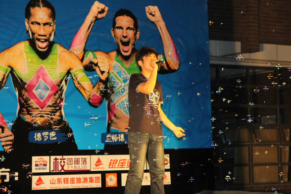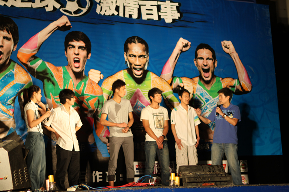 南非足球世界杯日益临近,足球运动之风吹遍校园,在全世界盛会来临之际,由团委主办、大学生足球协会承办的“百事五人制球王争霸赛”即将在威尼斯官网举行。5月26日晚7:30,伴随着动感、欢快的音乐,“百事五人制球王争霸赛”开幕式在长清校区17栋楼U型广场正式举行。校学生会秘书长史旭凤、副主席王守栋,数字艺术与传媒学院主席张恩光参加了本次开幕式。