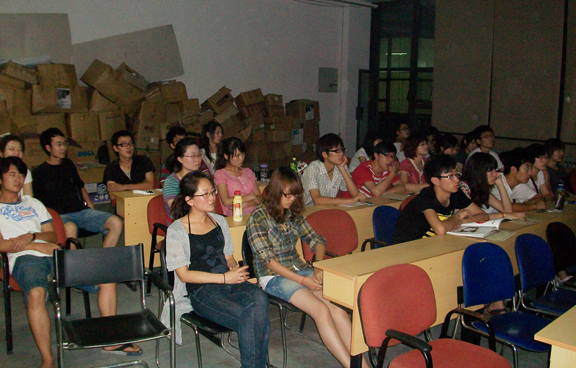 6月25日下午7:30, 大学生暑期支教培训会在长清校区综合办公楼二楼多媒体教室顺利举行。由志愿者协会会长杨吉会对暑期支教人员进行本次培训。首先,会长对培训人员核对名单,向大家解释了支教报名情况,并确定了本次支教人数。随后,给支教人员浏览了上次支教的资料,并讲述了不少去年支教过程中的趣事。并详细向大家说明了本次支教的具体情况:一、关于今年支教安排的时间、地点、规定、选拔队长等问题。二、重点强调外出的安全问题,提出要注意四个“准备”,并对衣食住行等方面作了一系列要求。三、对此次支教的课程安排、招收对象及课程介绍作了简述。培训在融恰的气氛中结束。