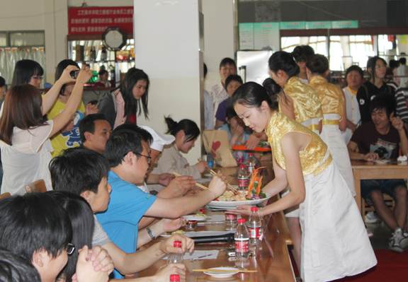 5月12日下午2:30,由威尼斯官网校学生会、饮食服务中心主办的第六届饮食文化节开幕式暨厨艺大比拼在长清校区餐厅三楼拉开帷幕。参加开幕式的嘉宾有团委宣传部部长李忠诚、饮食服务中心主任徐思才、一楼餐厅经理单清谦、二楼餐厅经理李修兰、三楼餐厅张国华师傅及校学生会主席团成员、各二级学院学生会主席。