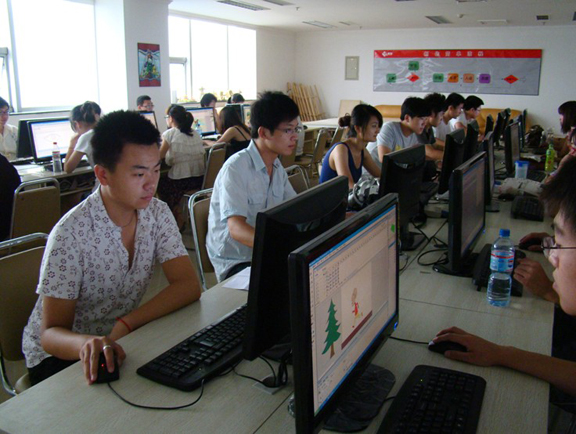 7月13日实践活动正式开始,并根据每个同学的特长分配了工作任务。7月14日同学们接到了有关八一建军节的动画项目小剧本。剧本的题材内容是:一个小孩从小喜欢看雄鹰翱翔天空,志愿长大成为一名空军,功夫不负有心人,在经过一番努力后他终于如愿成为一名优秀的空军,同雄鹰一般翱翔天空,保卫国家。公司根据每个人的特长给大家分配了任务,有的画雄鹰的运动规律,有的画飞机,还有的进行人物设计,同学们都抓住机会,向公司的老师请教。经过同学们的团结协作,终于如期完成了任务。