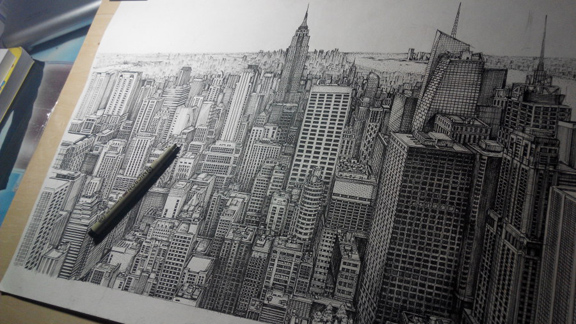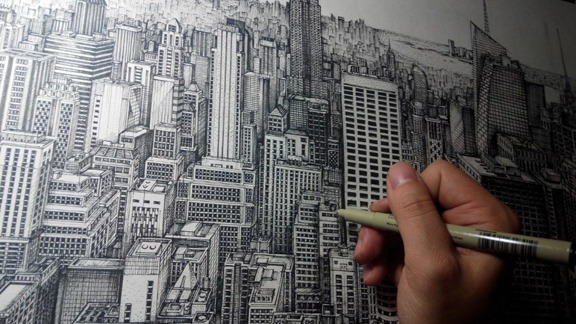 针管笔写实场景画