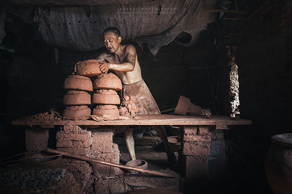 皖南地区做陶的除了泾县琴溪古陶,就属铜陵白杨坡的这家最牛比了,老袁家上个世纪初从湖北迁来就落户在这里做陶为生,祖传的手艺,现在是第三代。做陶烧窑是个脏活累活,老袁近七十岁了,儿孙们没人愿意做这个职业,只能从周边雇几个师傅帮衬他继续撑着。明年这里就要拆迁,袁家在白杨坡的做陶作坊算是走到尽头,好在会拿到一大笔拆迁款,老袁可以洗净泥手泥脚到城里买个房子,去做城里人了。从此白杨坡将再也没有做陶人。