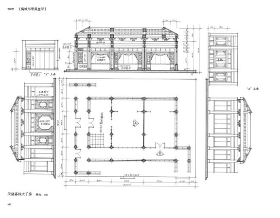 杨占家:设计横店的明清宫苑的时候,就住在北影厂隔壁,可以到故宫拍照片,到图书馆找资料也方便。这个设计工作,带着十来个助手,干了两年多。我们是古建方法画,横店的设计院把图翻成工程图。设计和建造明清宫苑投入很大,建筑都是一比一的,没有缩小,不过只是做了主要场景,次要的不做。故宫很多材料,像汉白玉,成本非常高,明清宫苑都该用水泥,上面喷一些白沙子,看起来有点像。