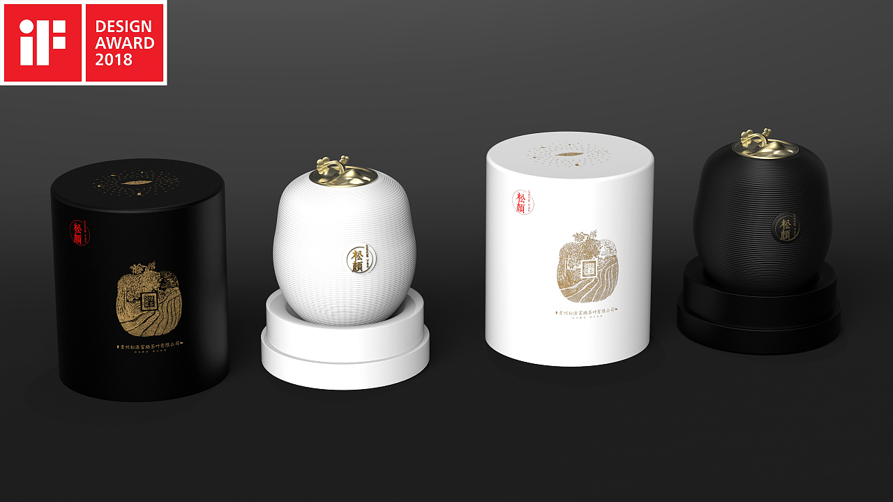 The visual image of the whole artistic work is a concrete description of the ecological environment of the tea garden, through the form of sketch painting, Dasan, tea, tea combined into a perfect tea pot. Top of the pot cleverly construct a tea garden form. Black and white, respectively, represent the two main kinds of Song Yan tea: White tea and Black tea, using a simple and intuitive way to pass out the characteristics of brand of Song Yan tea.