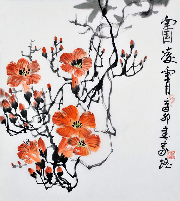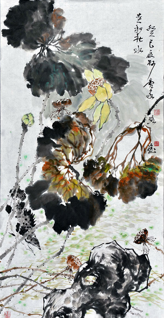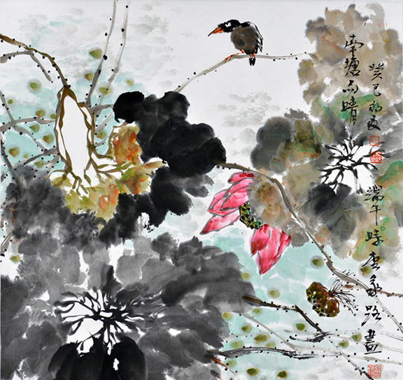 家路兄是一位游走于民艺学、设计艺术学领域的学者型艺术家。大学学的是装潢设计专业,后又投入到民间艺术和艺术学研究,先后师从潘鲁生、陈池瑜、张道一等著名学者研习艺理,并获得硕士、博士学位,在民艺研究和设计艺术学研究领域著述颇丰,且视野开阔,文思缜密,多有鲜明独到的见解。其花鸟画师从于花鸟画名家郭志光先生,因而,郭志光先生师承传统又重创新,重格调,讲气韵的创作取向也影响着他。家路注重对老师和前辈大师的学习,以一种传统文化的自觉,接续写意花鸟的文脉,注重用笔的书写性,追求韵致和境界。他的写意花鸟画笔法灵动,墨色自然,色彩明快,体现出勃勃生气甚至野逸之气,不同于无病呻吟的那些自诩的所谓文人画,更加注重自身感受的表达,是一种真实情感的自然流露。