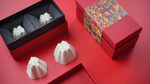 最终我们根据材料特性,以及大众对于材料的认知度,我们分了两个系列——常规上釉款和奢侈羊脂玉款。同样是玉土材料的设计。