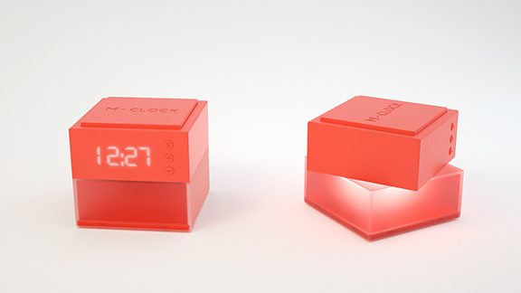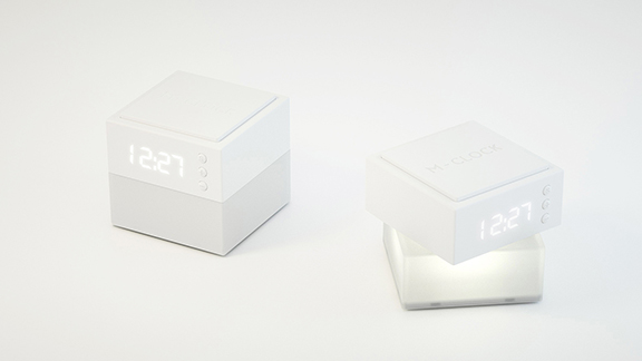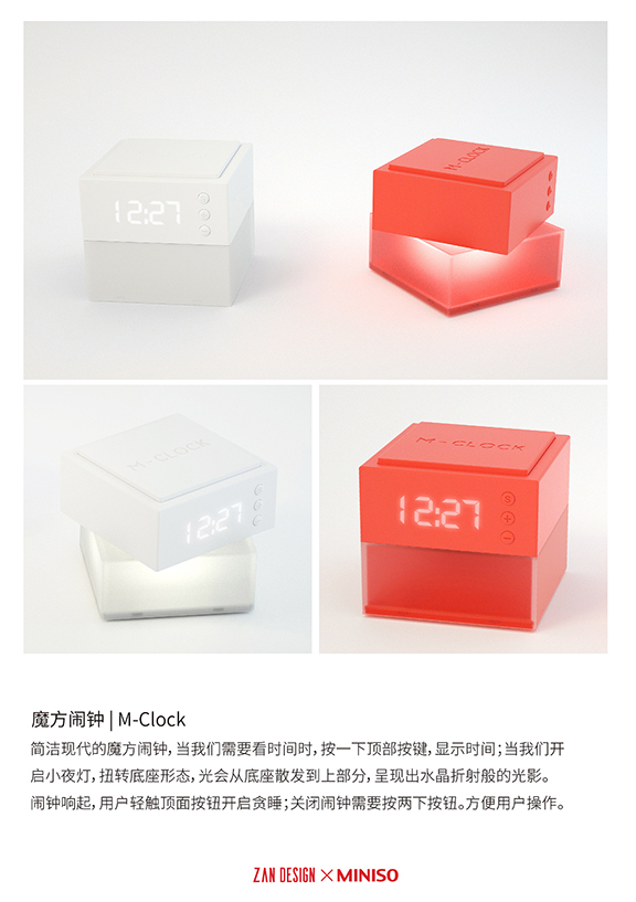 简洁现代的魔方闹钟,当我们需要看时间时,按一下顶部按键,显示时间;当我们开启小夜灯,扭转底座形态,光会从底座散发到上部分,呈现出水晶折射般的光影。