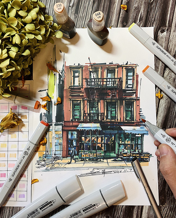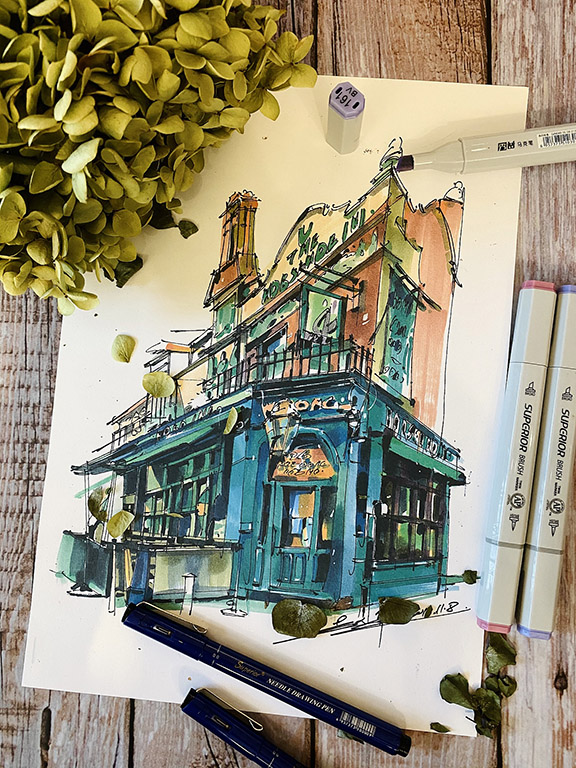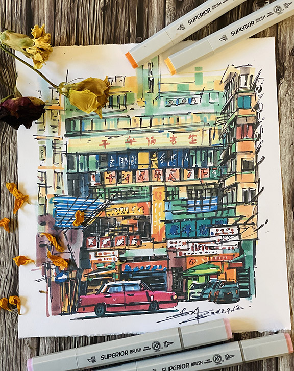 我的马克笔街景速写,随着时间和作品的积累,慢慢去摸索不同的方法技巧,对于马克笔的特性尝试了长期短期的、不同国家城市建筑风格,色彩变化,用最简单的方法去表现跟丰富的画面,路还长,慢慢沉淀未来希望有更多喜欢马克笔绘画的小伙伴一起加入到马克笔城市街景创作中来,用马克笔记录你我生活的城市。