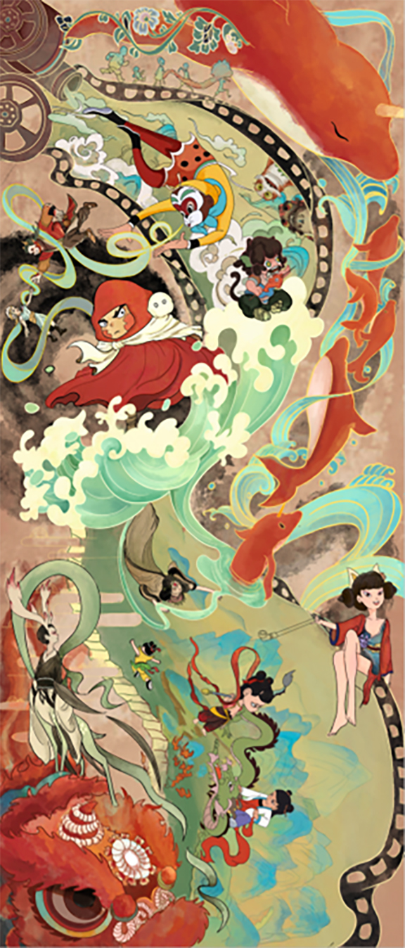 本作品采用国漫的主题,近年来国漫逐渐崛起,让更多人了解认识并喜欢上了国漫,我选择了近几年具有代表的国漫电影人物穿插在一起,突破次元壁,感受国漫的发展;