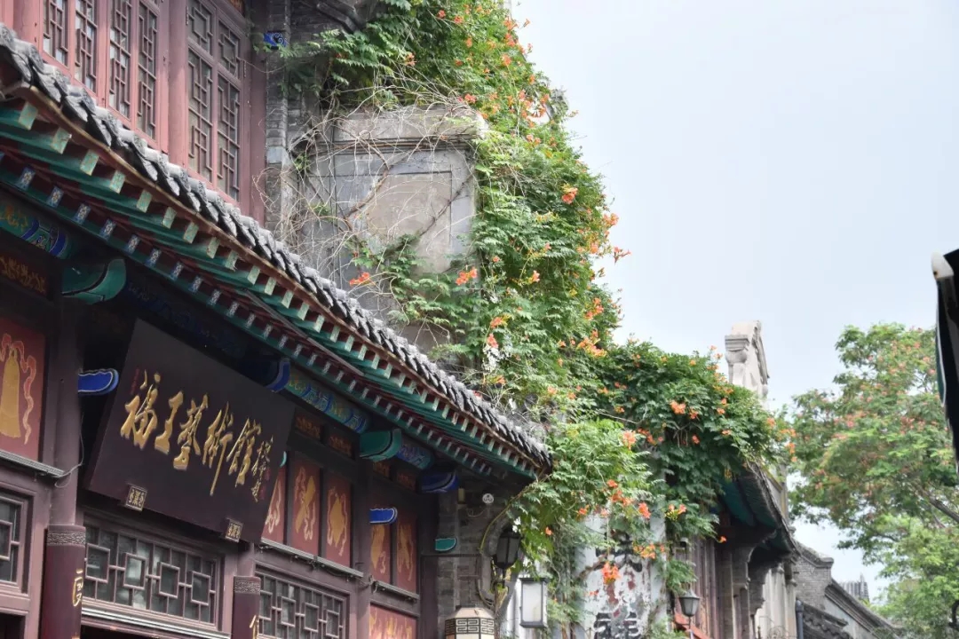 古色古韵的建筑映入眼前,仿佛置身于明清时期热闹繁华的街市。周村虽历经百年风雨,仍保持着古朴的明清原貌和历史本色,斑驳厚重的青石院墙,古色古香的门庭院落,精雕细琢的房檐砖雕。