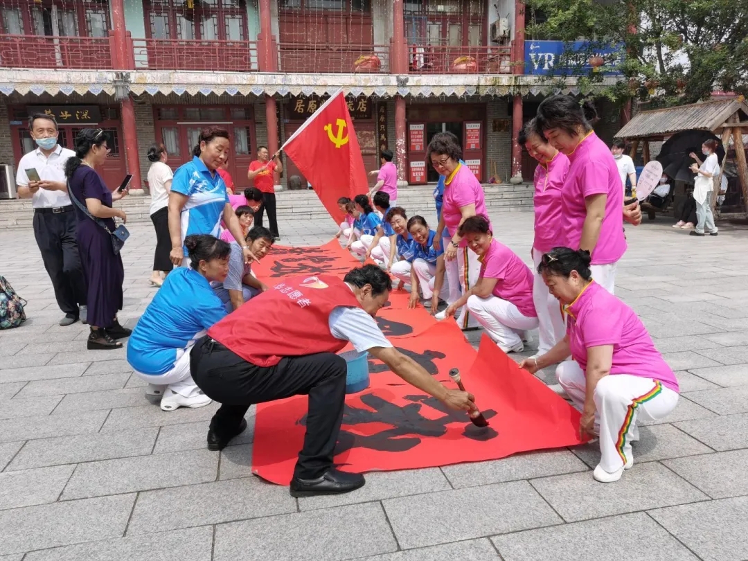 新中国成立以后,周村古城在党的正确领导下,焕发出亲所未有的姿态阔步向前发展。党的百岁生日之际,古城群众积极参加党史学习,契合本次社会实践“丝路古城察古史,翰墨沁心颂党恩”的主题,我们团队积极融入当地党史学习教育,充分发挥工艺美院学子才能,同古城群众一同庆祝伟大党的百岁生日。