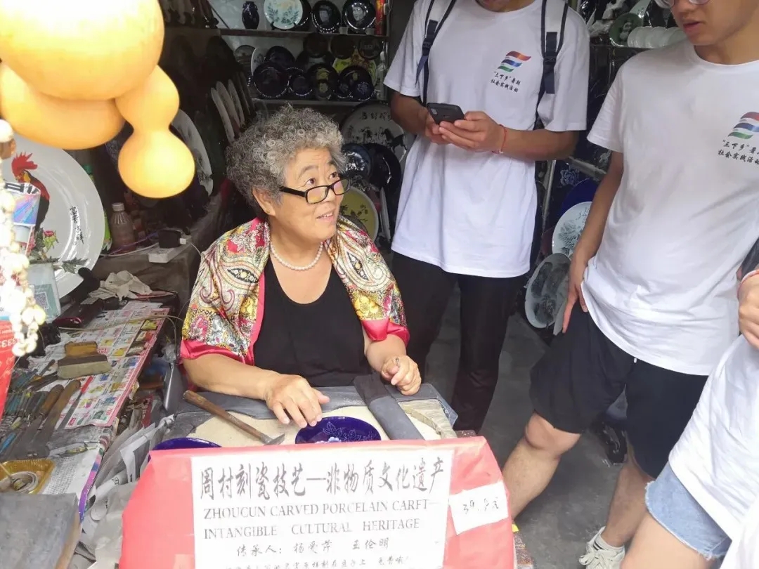 调研小组有幸采访到了周村刻瓷技艺暨非物质文化遗产的传承人杨爱芹女士,一起倾听其对刻瓷技艺各方面的见解,感受到了浓郁的民族手工艺文化。