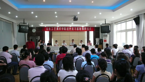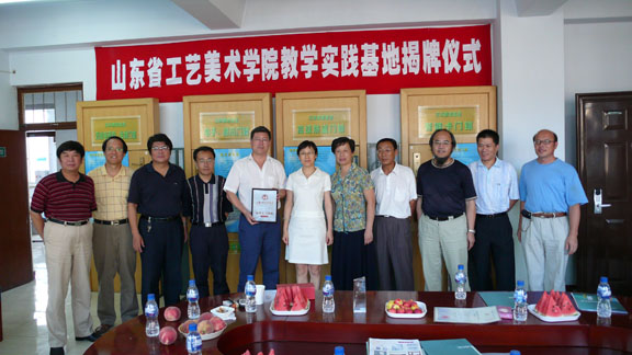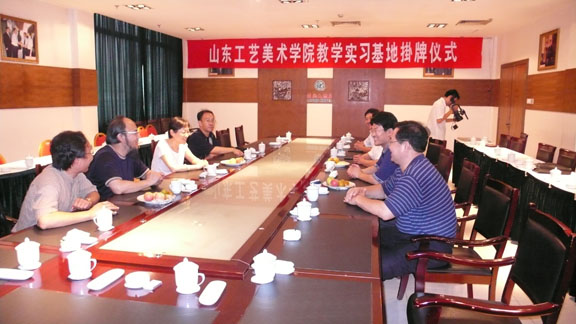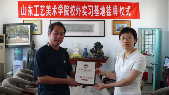 7月18日下午,在山东临朐鲁艺红木制品有限公司举行了授牌、揭牌仪式,临朐县县长肖明胜、副县长赵同祥、县经贸局副局长高凌利,公司董事长孟庆时,造型学院院长陈飞林出席。临朐鲁艺红木工艺品有限公司在木雕、浮雕壁画、壁饰等方面有较强优势,拥有先进的设备与经验丰富的工艺师、技术工人。在座谈中,双方对前期学生实习情况给予充分肯定,表示将会本着优势互补的原则来加强合作,为学生实习和教学科研创造更好的条件,公司也将借助威尼斯官网的设计优势和水平拥有更强的发展后劲。