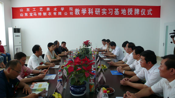 7月21日上午,在诸城市山东宝马特(英国独资)制衣有限公司举行了授牌、揭牌仪式,诸城市副市长高崇臻、中小企业局局长张荣光等领导同志,公司董事长张崇伟,服装学院院长徐思民、书记张军波等出席。宝马特公司是一家集织布、染色、印花、绣花、成衣、进出口贸易为一体的专业性服装企业,拥有“宝马特”男装系列和“龟龙”童装系列两大品牌。长期以来,作为服装学院校外实习基地,在教学、科研方面起到了积极作用。此次将宝马特公司确立为校级校外实习基地,必将更加有力地推动学校的教学、科研和公司的新产品研发、品牌战略发展,实现校企共赢。