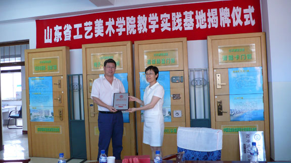 7月19日下午,在烟台三环科技有限公司举行了授牌、揭牌仪式,公司总经理张永治、副总经理张平等公司领导,工业设计学院院长王智、副院长王向勤等出席。烟台三环科技有限公司是最早生产指纹系列产品的厂家之一。它集研究、设计、开发、销售于一身,公司致力于以安全防范为主的机电一体化产品的开发与研究。承担国家级、省级重大设计、科研项目,多次获得国家级、省级优秀教学科研成果奖和诸多产品外观设计专利。在座谈中,张总经理对长期以来学校教师和学生为企业提供的设计服务及取得的良好社会和经济效益表示满意与感谢。李新副院长也对企业长期以来为教师教学科研、学生实习创造了良好学习、生活条件表示感谢。今后双方将会本着优势互补、资源共享、共同发展的原则,加强校企联合的广度和深度,使企业不断提高竞争力和市场占有率,使学校不断提高实践教学水平,从而使学校培养更多企业、社会所需的设计艺术人才。