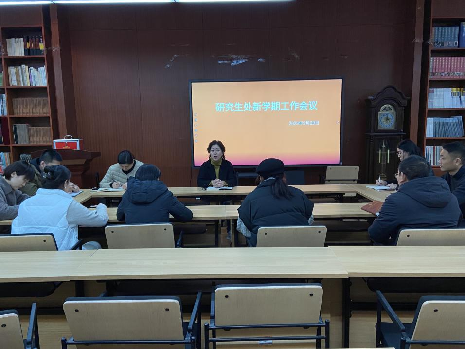 2月20日,研究生处新学期工作会议在长清校区研究生活动室召开,处长赵屹、副处长吴修成、宋嵋、各科室工作人员参加会议。