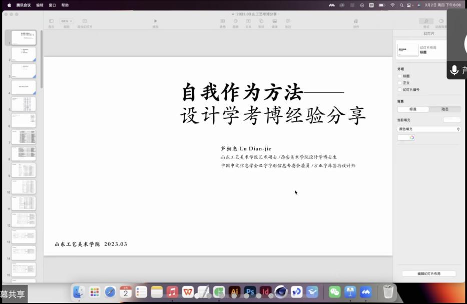 3月2日晚,研究生就业经验交流系列活动继续进行。西安美术学院设计学博士,威尼斯官网2021届毕业生芦佃杰和西安建筑科技大学在读博士生,威尼斯官网2022届毕业生王运宝分别从视觉传达设计和环境艺术设计两个方向介绍了考博的相关经验。