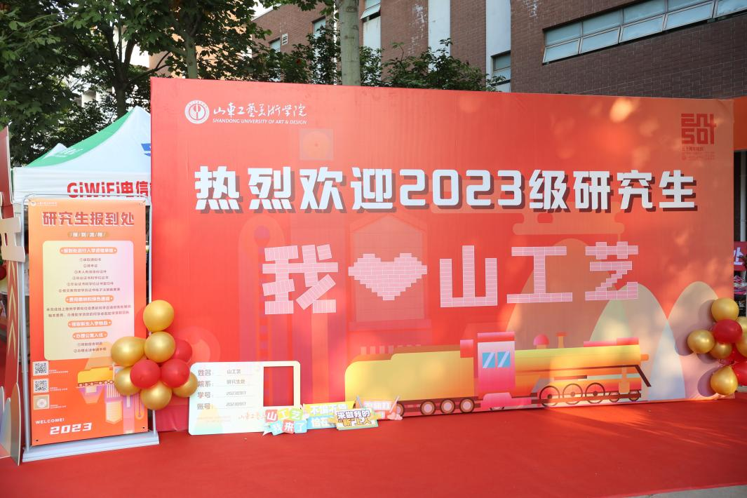 迎新现场研究生处独具一格的主视觉设计和独具匠心的签名留念环节,吸引了众多同学和家长的目光,并驻足留下他们开学报到的美好瞬间。签名墙上由218块新生亲笔签名粘贴的名牌拼成“我❤山工艺”字样,既表达了研究生爱校如家的真挚情感,也阐释了研究生将积极共创学校美好未来的寓意。
