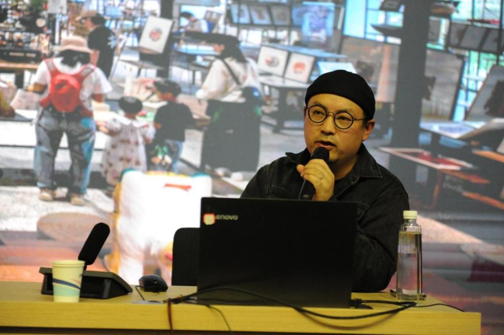 仲文结合自身从业十余年的工作经历为师生讲授如何在一次一次目睹那些正在消亡的民间手艺后,通过对民间手工艺不断的调查、访问与整理,以“再现、再造、再生”的方式,致力于将非遗从博物馆里“解救”出来,让它们得以回归自然生活,让人们实在地发觉独属于中国的在地之美。仲文认为非遗的诞生与乡土文化、手工业生产方式有着紧密的联结,非遗跨界创新的方向是需求,需要根据市场准确把握创新点,应积极构建传统工艺文化当下的用户场景,让更多人去使用。他还提出,如今随着信息化时代的到来,人们的思想观念、生活方式、审美情趣等方面发生了翻天覆地的变化。非遗赖以生存的土壤正在衰退,非遗的传承保护随之陷入困局,而其破局新生的关键就在于重新建立与现代生活的联结,根据需求设计相关文创产品。在谈到如何设计一件优秀的文创产品时,仲文认为“文创的内核不在贴图”,需要深入了解其背后的历史、使用方式、产业等方面后再进行设计,不能从设计的本身去看待产品,而是应该从产业链等宏观角度去看待文创产品的设计,并通过自然造物所设计的端午节“龙粽”、八月十五新疆“切糕”等包装案例以及“大过中国节”“乡村城市会客厅”等概念案例进行深入剖析,通过创意研究,让具有传统手工艺基因的文创产品融入当下生活,用设计的力量让传统文化焕发生机。仲文的生动演讲,让大家充分认识到中华传统民间手⼯艺的多重价值,引导大家在艺术设计创作中关注优秀传统文化的时代建构逻辑与方式方法,值得大家结合专业深入反思学习。