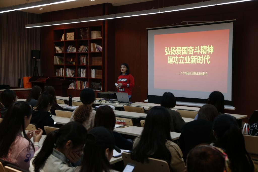 为深入学习贯彻习近平新时代中国特色社会主义思想和党的十九大精神,认真贯彻落实习近平总书记对弘扬爱国奋斗精神做出的一系列重要指示,在10月19日上午,研究生团总支书记王苏组织开展爱国主义教育学习会,会议以“弘扬爱国奋斗精神 建功立业新时代”为主题,观看《钱学森》纪录片并进行学习讨论。