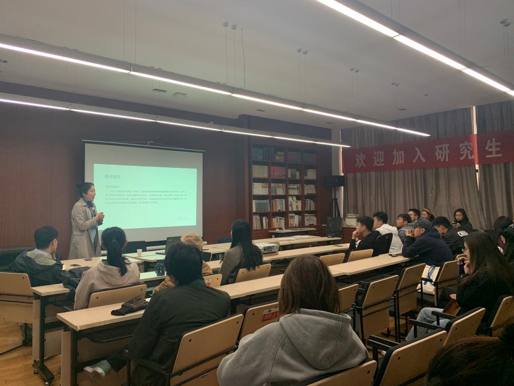 宋老师从基本概况、组合艺术资源、检索原理、著作权、论文写作等方面展开,通过PPT的形式为研究生们进行了讲解。在“基本概况”部分,宋老师详尽地介绍了馆藏特色、自助借还、电子资源等内容,使同学们对图书馆有更全面的了解。在“组合艺术资源”部分,宋老师推荐了收集资讯的众多平台,希望研究生们充分利用多种媒介,提升科研能力。在“检索原理”部分,宋老师针对网络资源检索进行了具体介绍,方便同学们更加快捷准确地检索文献。在“著作权”部分,宋老师通过具体案例向同学们强调了知识产权的重要性,希望同学们强化自身的版权意识,同时以此为鉴,端正学习风气,足履实地地进行艺术研究与创作。最后,宋老师以“论文写作”为要点展开,为同学们列举了多种管理工具以及文献检索软件,有助于同学们形成更系统的论文创作思维。
