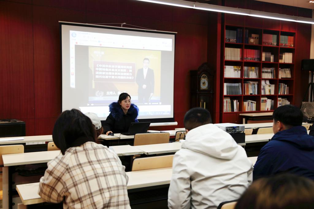 为了进一步深入学习领会党的十九届四中全会精神、更加扎实地推进“不忘初心、牢记使命”主题教育,2019年11月29日上午,研究生党支部组织全体党员在研究生活动室进行了十九届四中全会专题学习。