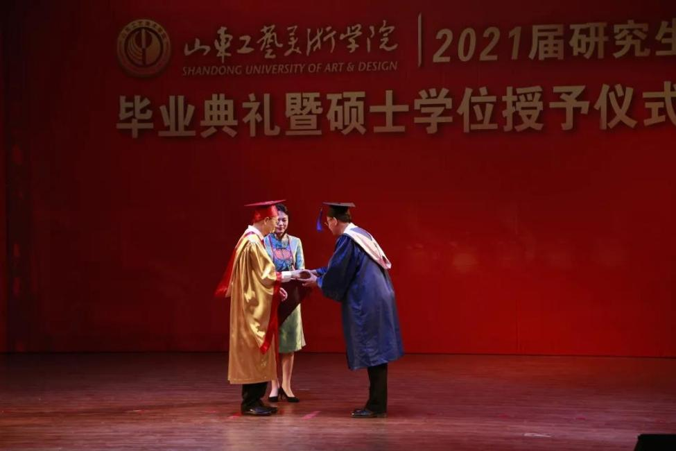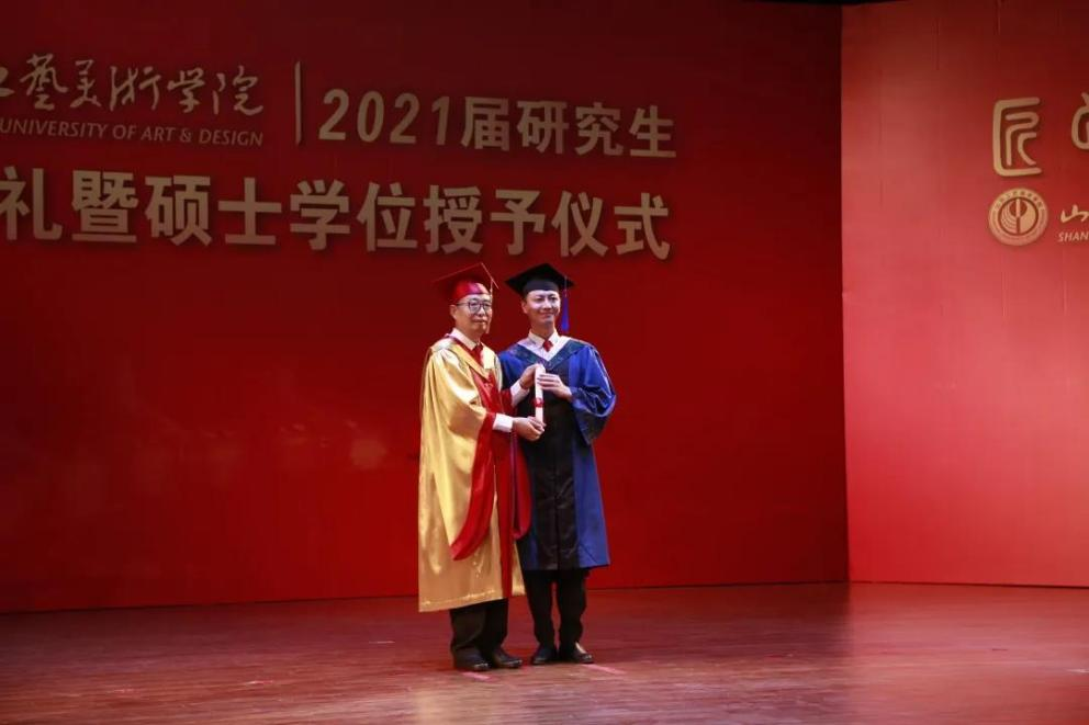 最后,潘鲁生饱含深情地祝福毕业生,“前程似锦,事业有成!”随着欢快的进行曲,潘鲁生院长为毕业生们逐一正冠拨穗、颁发硕士学位证书,并合影留念。