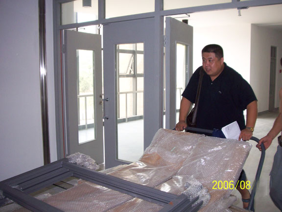 8月5日,随着威尼斯官网主体搬迁的正式启动,国资处全体人员全力投入到搬迁服务当中。在李新、刁在祥副院长的领导下,国资处对新校区办公家具及设备做了充分的准备,并对搬迁计划作了周密安排。张洪军处长亲临现场指导工作,任伟清科长带队,国资处在综合楼教学区、办公区分别设立联系处,由韩世杰、刘振良两位同志负责新办公桌椅的发放。随着新办公家具的陆续到位,联系处呈现一派繁忙景象。一辆辆满载崭新家具的运输车,会同其他单位的搬家队伍,浩浩荡荡驶入新校区。国资处人员跑上跑下,不停地奔走于教学区与办公区之间,指挥着搬运工人卸车搬运,在八月的酷热与阴雨交替的天气下,任由汗水浸透、雨水淋湿了衣服。在所有人员的共同努力下,8月5、6日两天时间,国资处发放了所有的职员椅及部分处级办公桌,职员位的安装也在紧张有序地进行。所有办公家具将于8月15日安装完毕。