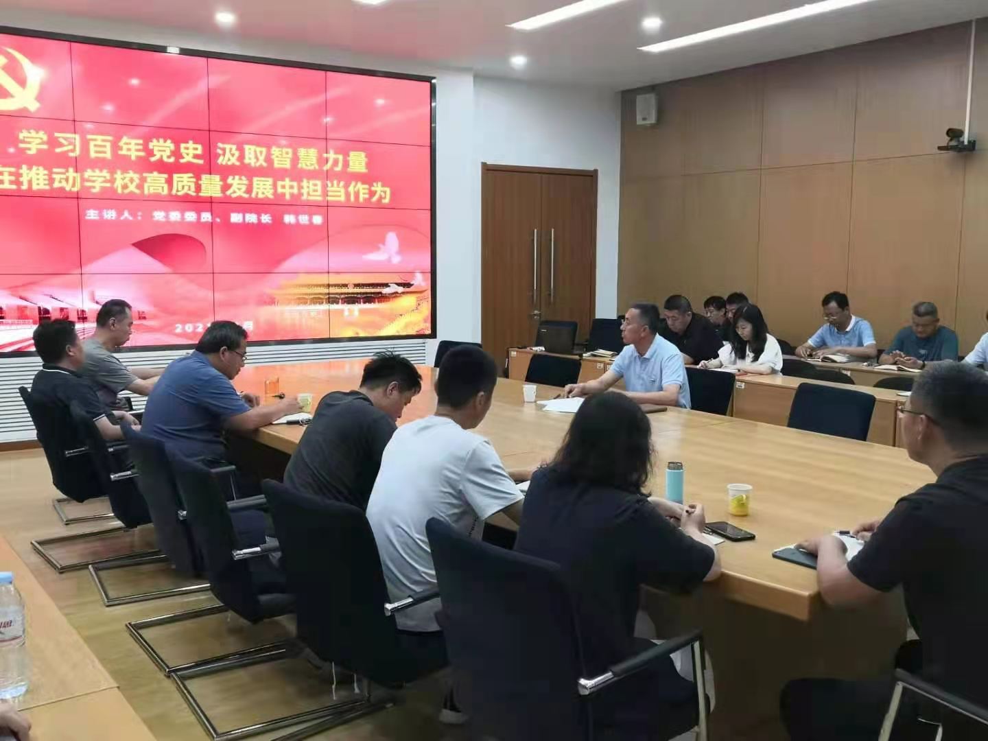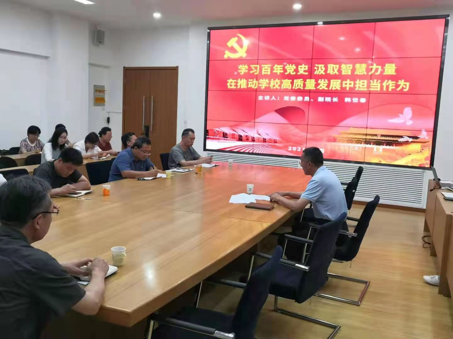 6月29日下午,党委委员、副院长韩世春以《学习百年党史,汲取智慧力量,在推动学校高质量发展中担当作为》为题,为所在党支部、分管部门、联系单位的党员干部讲授了党史学习教育专题党课。
