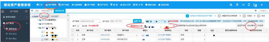 4、系统资产变动操作指导。为保证资产管理员顺利进行资产变动,资产管理处依据学校岗位调整文件将人员调整到现部门,原部门按使用人查询时将不再显示该人员。原部门资产管理员系统操作时,需进行以下步骤: